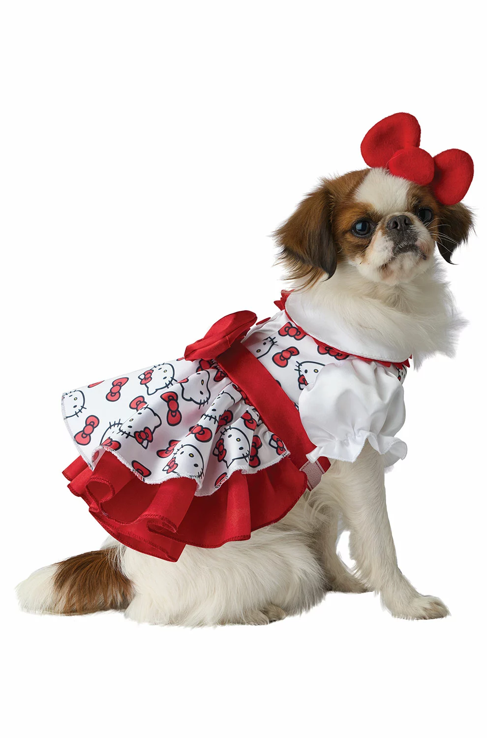 Hello Kitty fans! Introducing the ultimate accessory for your furry pet! Your pup will be the talk of the town with this cute and stylish ensemble. The costume features a bright red and white color scheme with Hello Kitty motif, complete with her signature red bow. Your pup will look like a true fashionista pop icon as they strut their stuff in this adorable outfit!